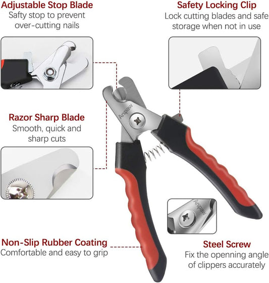 Dog Nail Clippers and Trimmer Set, Anipaw Stainless Steel Non Slip Handles & Razor Sharp Blades, Safety Guard to Avoid Over-Cutting, Grooming Tool for All Small Large Pets, Free Nail File